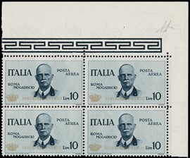 1935 – International Aeronautical Exhibition, complete set of four values in blocks of four, MNH with corner margin [..]