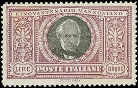 1923 - Manzoni, 5L violet and black, line perforat, 1923