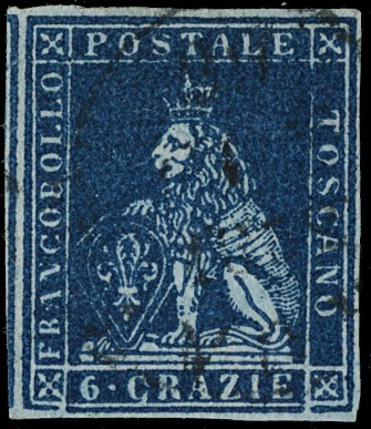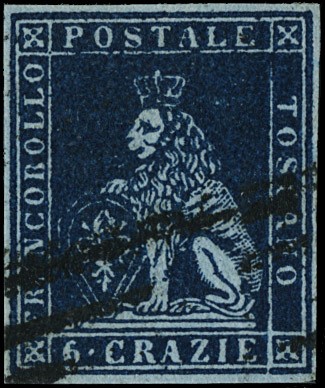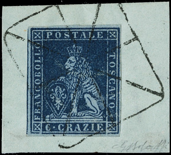 1851 - 6 cr, four used copies (one on fragment) in three different shades, from well to very well margined. Some signed A. and G. Bolaffi (Sassone 7a, 7c, 7f - Euro 2,850)