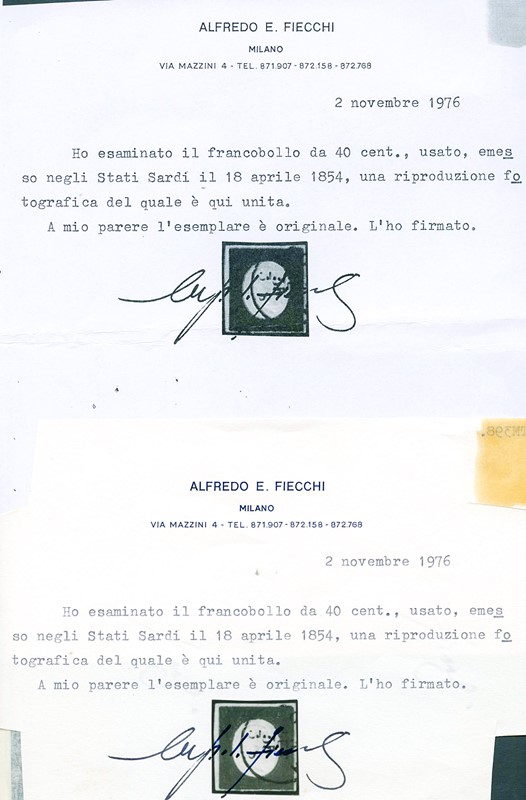 1853 - 3rd issue, the complete set of three denominations, perfect and with good margins. The 40c with a slight crack (as often found), nevertheless a superb example Cert. Fiecchi for the 40c (Sassone 7d+8b+9 - Euro 1,700+7,750)