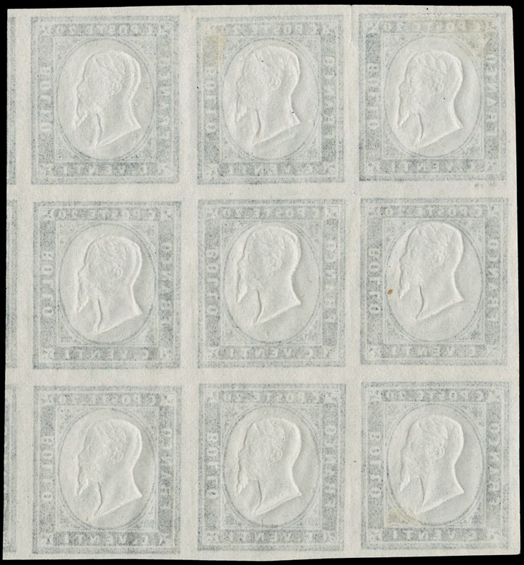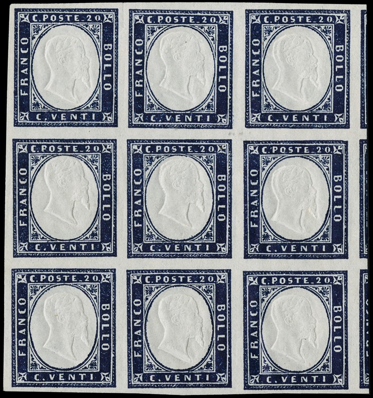 1855 - 20c indigo, BL9 with five stamps MNH. Very fresh (Sassone 15E - Euro 2,800+)