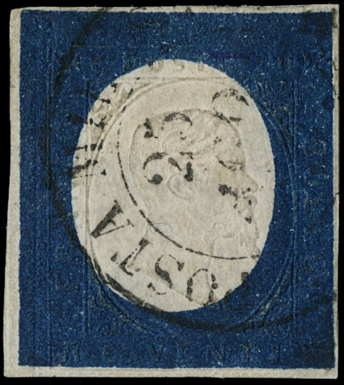 1855 - 3rd Issue, 20c blue, two copies cancelled with double-circle datestamp with Sardinian Military Post rosette cancel used in Crimea. Rare, mixed quality (Sassone 8+pt.13 - Euro 5.600)