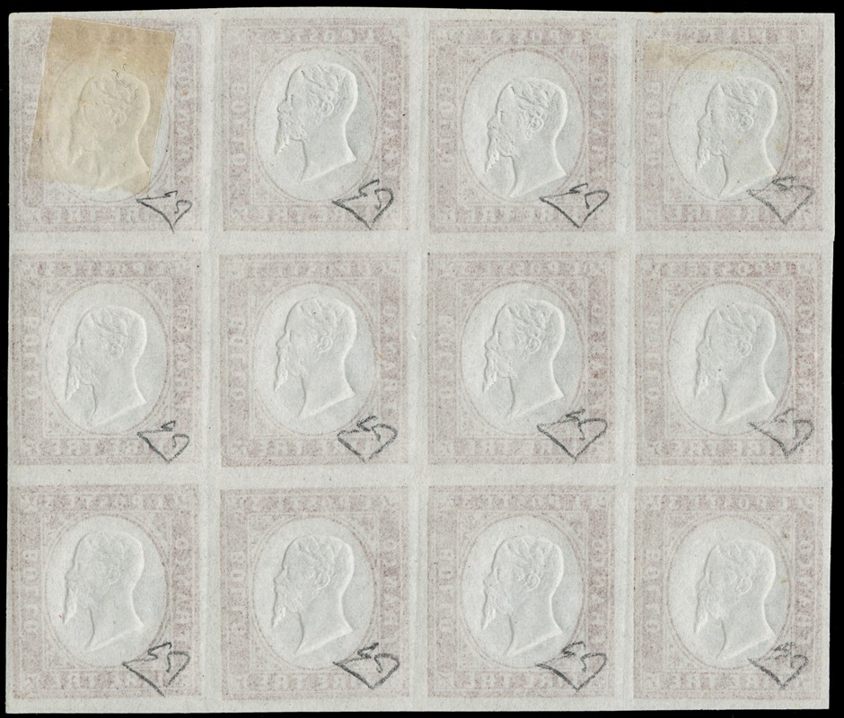 1861 - 3 Lire bright copper, block of 12 with 10 s