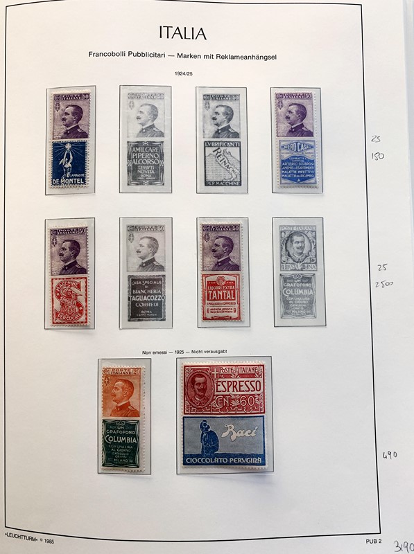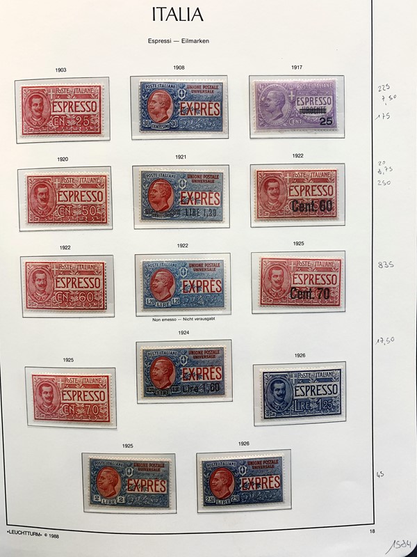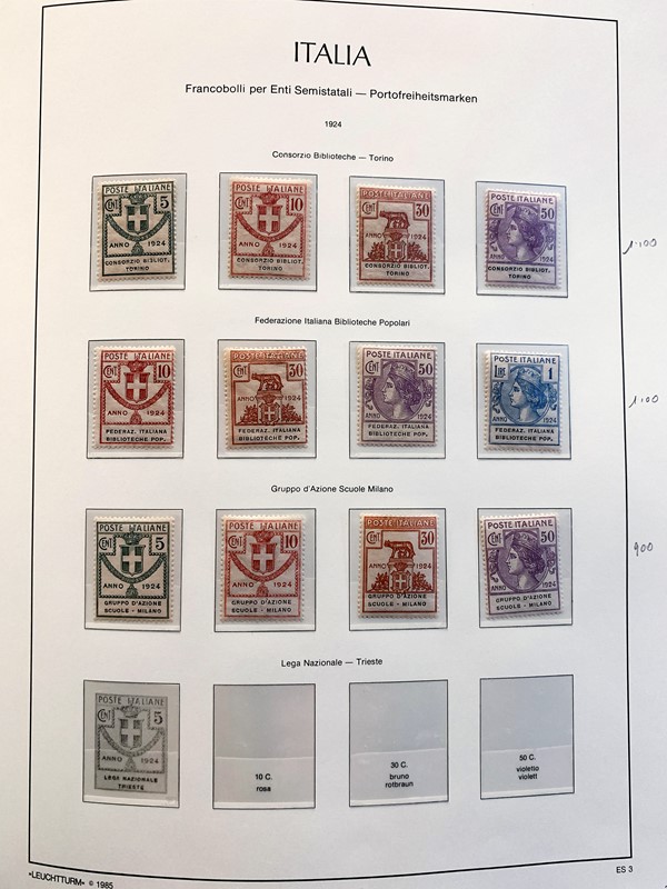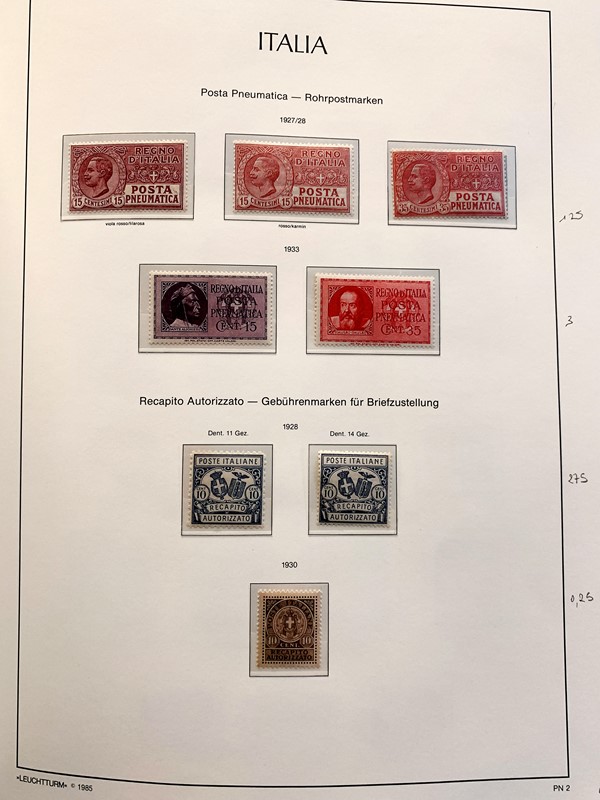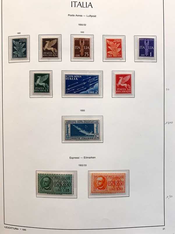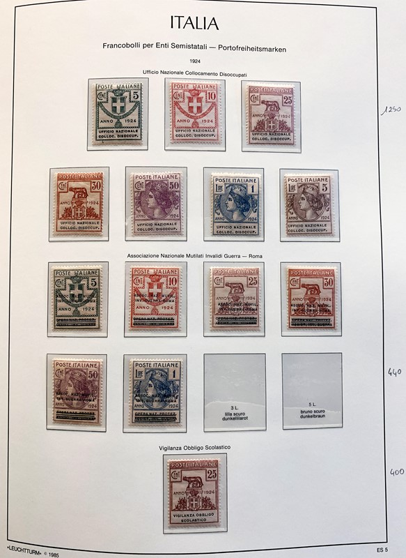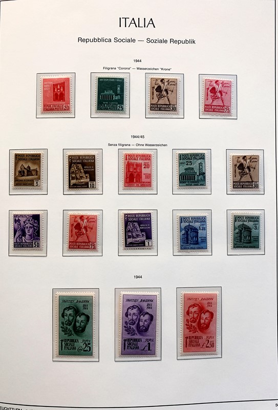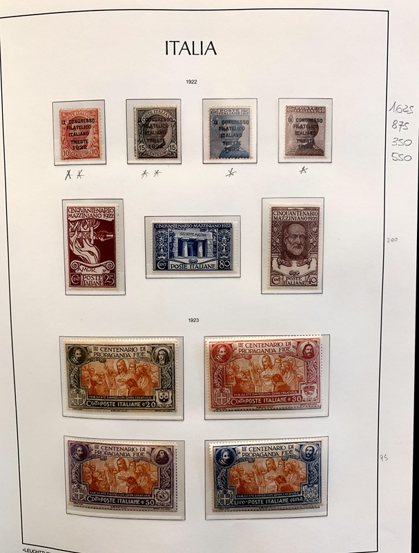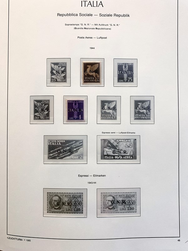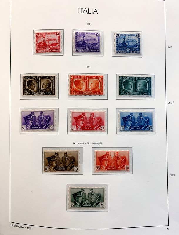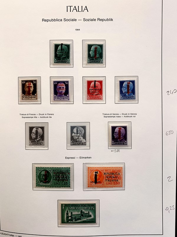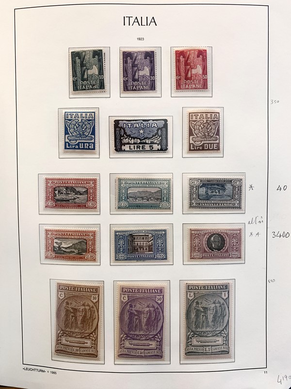 1861/1945 - KINGDOM OF ITALY: advanced collection of new stamps of the period, mainly MNH, with some mint and used, including PO, Airmail, some Services and RSI, collected in a Leuchtturm album. Very fine general conditions. 20 certs