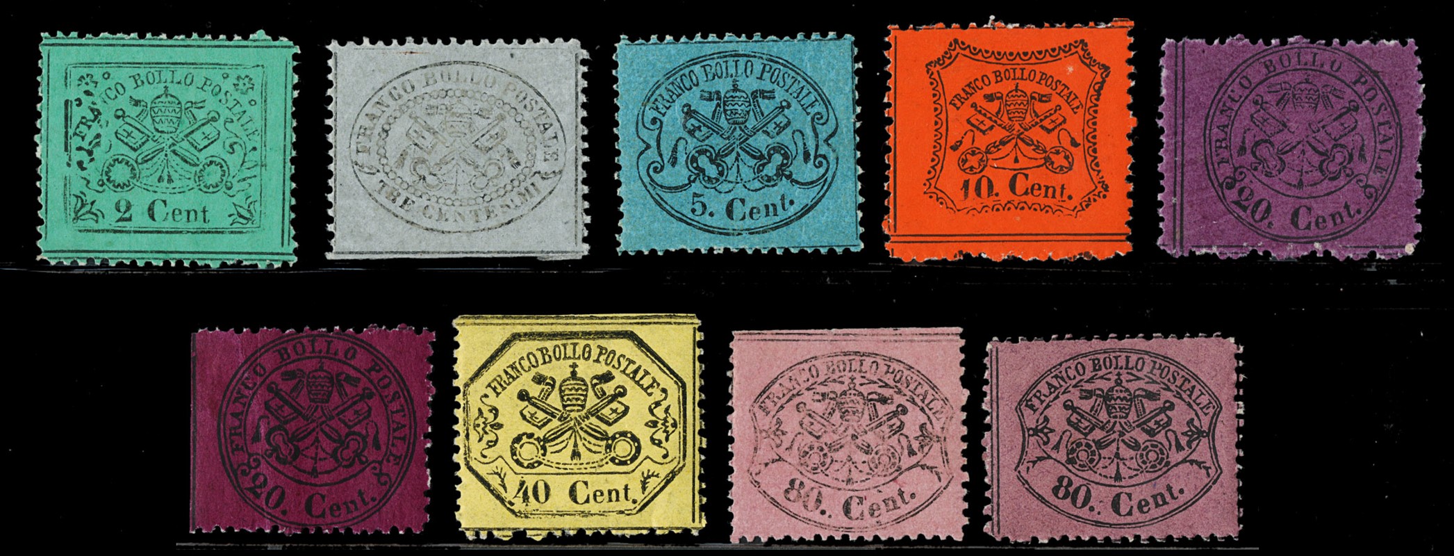 1868 - 3rd issue, the set without the rarest values but including the uncompleted issue, MNH/Mint without gum. (Sassone 22, 25/26, 28/28f, 29/31, 32/35 - Euro 900)