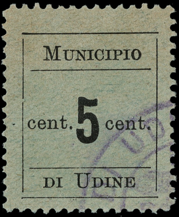 1918 - Udine town hall: 5c black, an MNH copy and