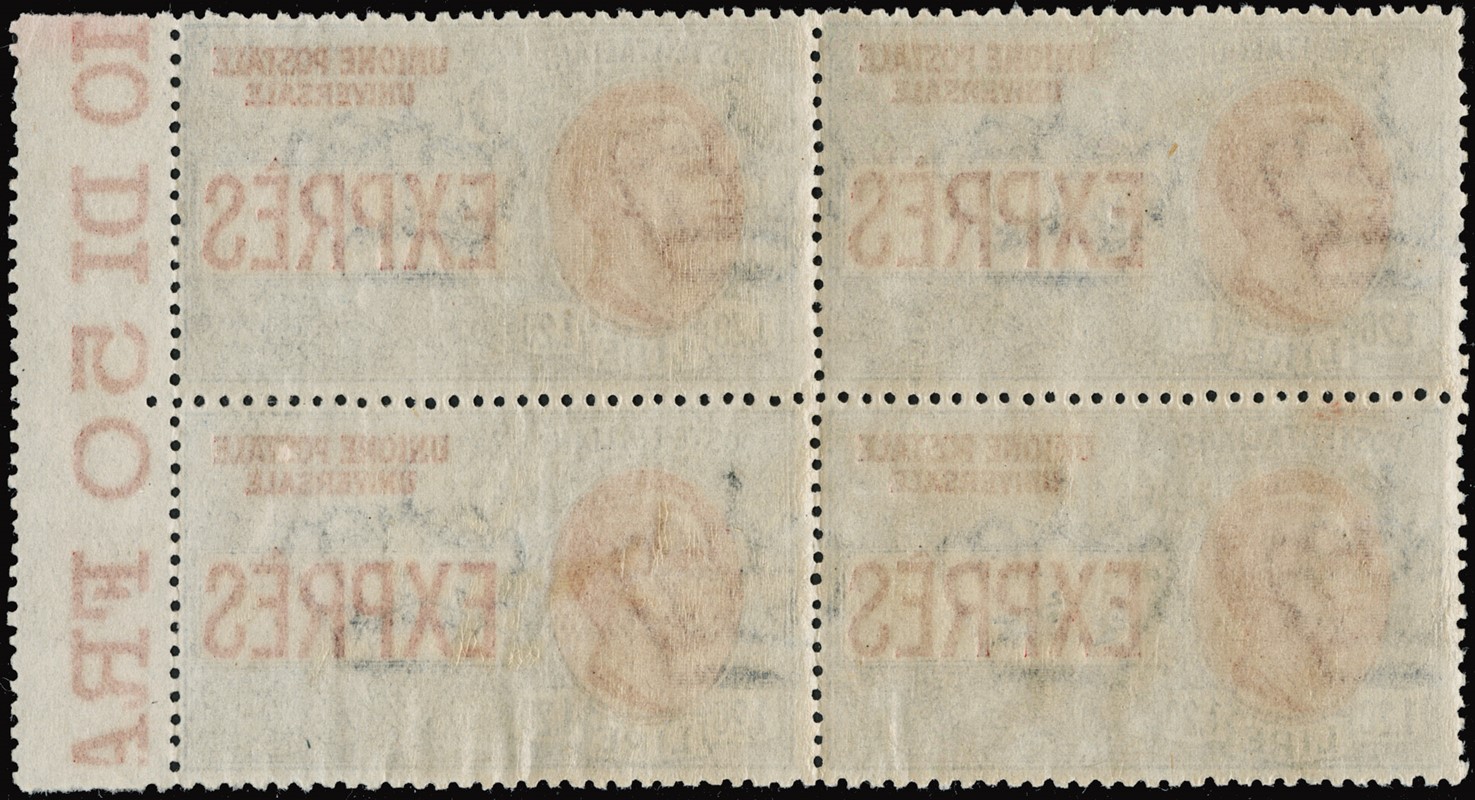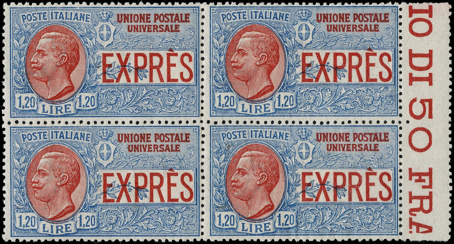 1922 - Express, 1.20L blue and red, block of four with sheet margin (Sassone 8 - Euro 4,000+)