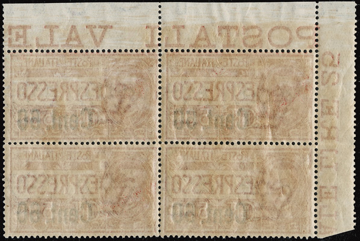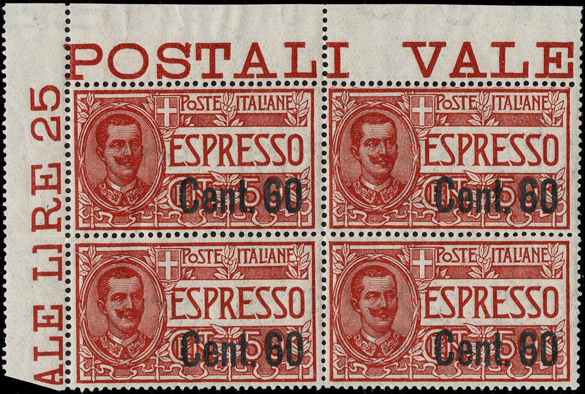 1922 - Express, 60c on 50c red, block of four with corner margin, fine centred (Sassone E6 – Euro 1,250+)