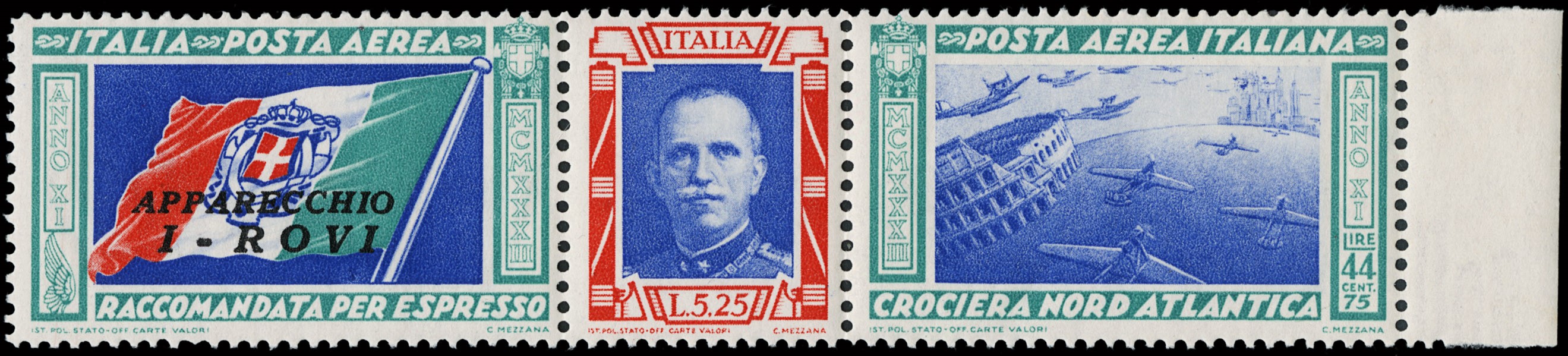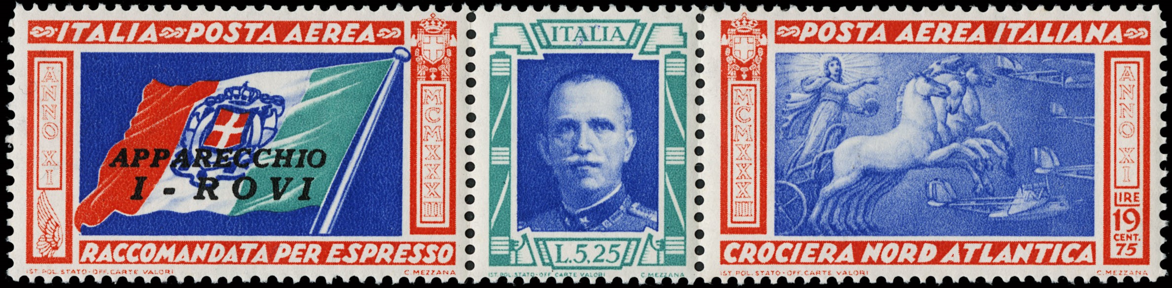 1933 - North Atlantic Flight, triptychs, the two denominations 'I-ROVI', MNH (Sassone PA51/52R - Euro 750)