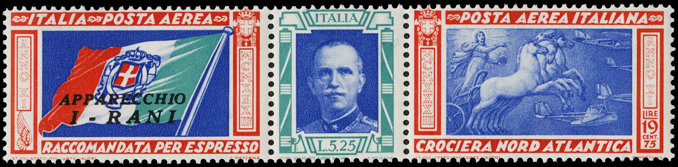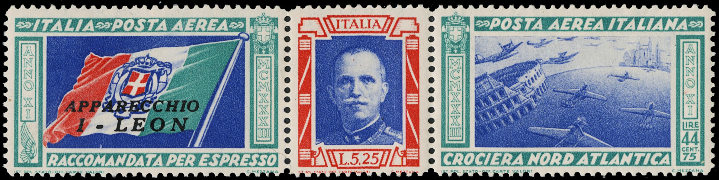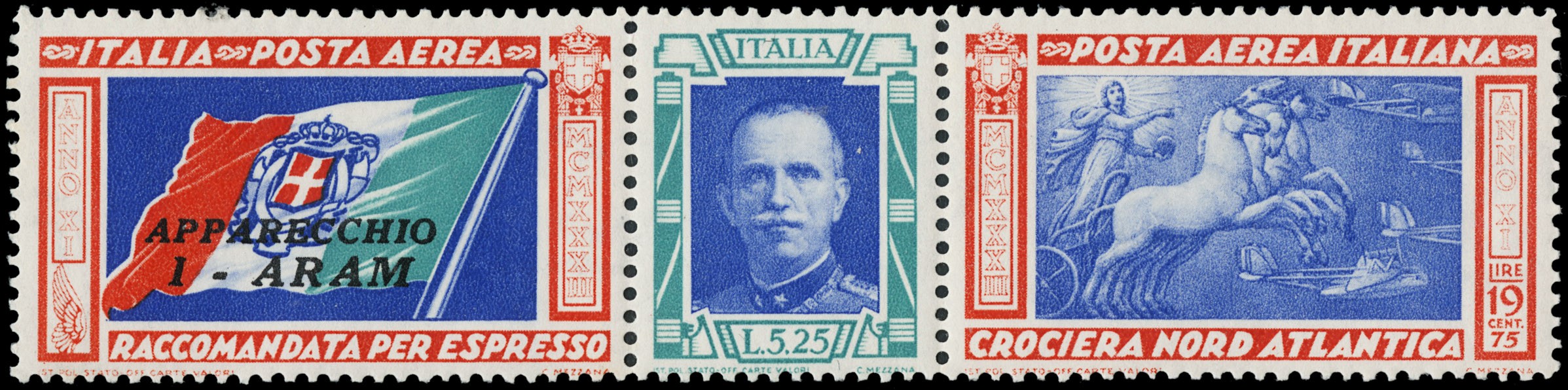 1933 - North Atlantic Flight, triptychs, the two denominations 'I-ARAM' and 'I-RANI', MNH (Sassone PA51/52+PA51P/52P - Euro 1,500)